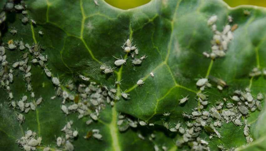 Тля — её убирают фитовермом (1 л воды и 2 мг препарата) или народным средством (1/2 стакана растительного масла, 1 стакан воды и 1 ч. л. хозяйственного мыла).