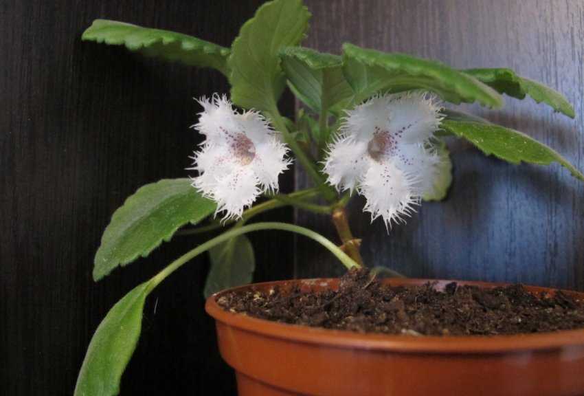 - Эписция гвоздикоцветная – очаровательная мексиканка, имеющая 2 типа побегов: укороченные с близко расположенными листьями и длинные с дочерними розетками. Темно-зеленые листья с алой средней жилкой слабо опушены. Бахромчатые белые цветки вида в зеве покрыты пурпурными крапинами. Эписцией этот вид цветоводы именуют по привычке, так как в настоящее время он отнесён к роду Альсобия.