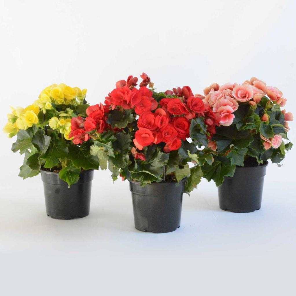 Бегонии в горшках с поддонами