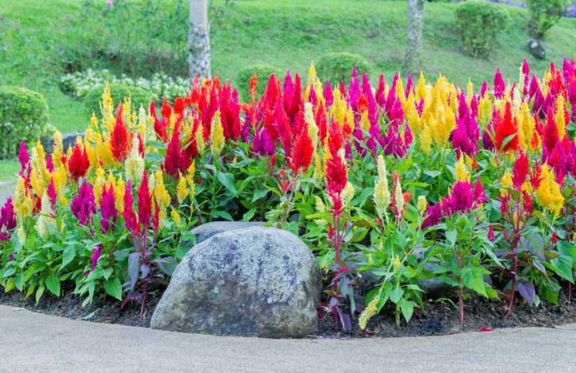 Эстетичные метельчатые соцветия целозии – излюбленный ландшафтными дизайнерами элемент в создании разнообразных декоративных композиций на клумбах.
