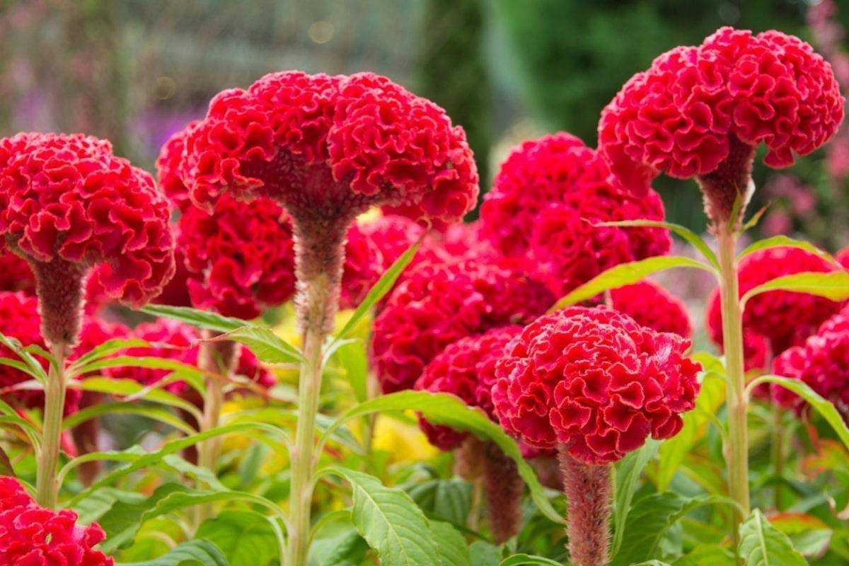 Весь дачный сезон, если посадить целозию в открытый грунт, защитив от непогоды, растение будет радовать своими яркими удивительными соцветиями. Жёлтые, пурпурные, красные, лососевые мелкие цветки, собранные в плотные соцветия на цветоносе, которому природа подарила форму петушиного гребня, неповторимы и неотразимы.