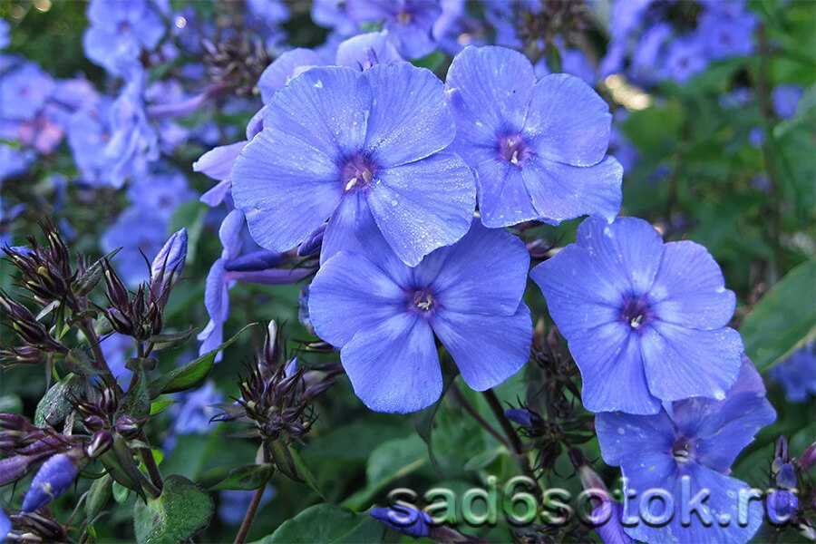 - Флоксы поливают раствором сульфата калия и суперфосфата по столовой ложке каждого. Минералы растворяют в 10 литрах воды и используют для полива 1 квадратного метра посадок.