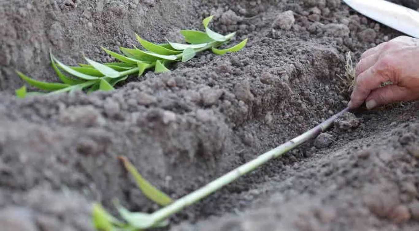 Не всегда стебель режут на части. Выкапывают неглубокую горизонтальную яму, укладывают в нее стебель целиком, предварительно сделав продольные порезы. Поливают эпином, над местом конструируют мини-теплицу. Укрывают в зиму торфом, опилками, снегом. К весне должны образоваться луковки.