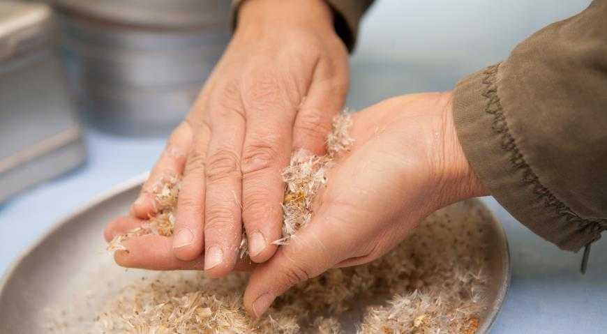 Если семена легко высыпаются из коробочек – переверните веточки так, чтобы отверстия оказались внизу, и потрясите их над бумагой – часть семян высыпется. В большинстве же случаев ворох приходится перетирать руками либо, ссыпав его в мешок, топтать или бить колотушкой. Особенно прочные коробочки раздавливают скалкой, стеклянной бутылкой, гирей или другим тяжелым предметом.