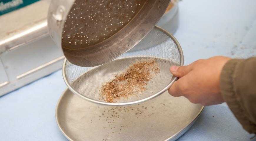 Следующий этап – выделение семян из вороха и их очистка. Для этого используют различные сита – подойдет сито для муки, дуршлаг. Сначала с помощью сита с более крупными отверстиями отделите крупный мусор.