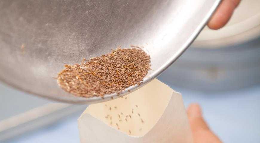 Очищенные семена аккуратно ссыпают в бумажные пакетики.