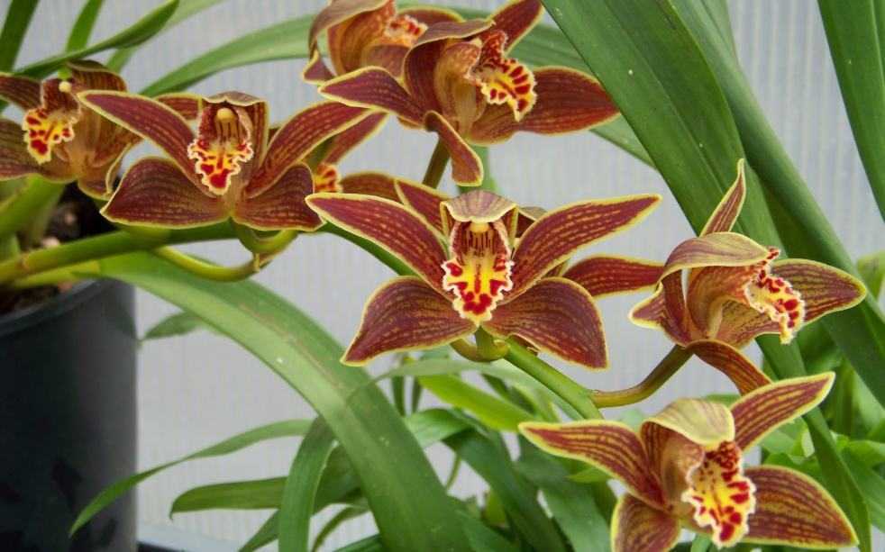 Именно такие сорта лучше держать в квартире. Большим и крупнолистовым сортам, таким как cimbidium grootblomig joel, суточный перепад нужен от 10 до 15̊С. Бояться замерзания цветка не стоит. Цимбидиумы привыкли к горной местности и могут выдерживать очень низкие температуры — около 3−5̊ тепла ночью.