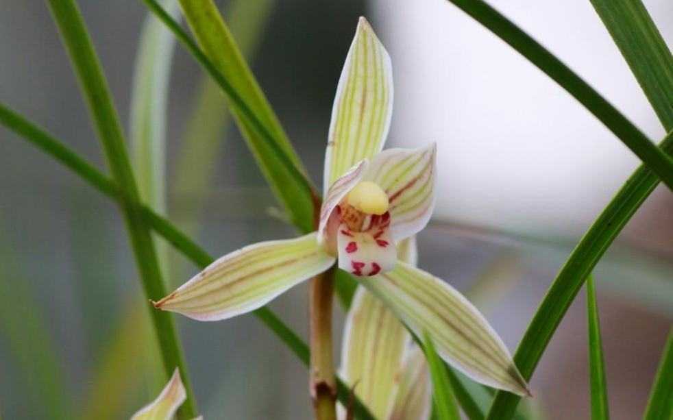 - Ланцетолистный цимбидиум. Произрастает в Азии. Этот вид имеет небольшие цветы светло-зелёного цвета с красной полосой по центру, достигающие в диаметре 5 см. У этой орхидеи широкие и длинные листья, глянцевые, насыщенно-зелёные.