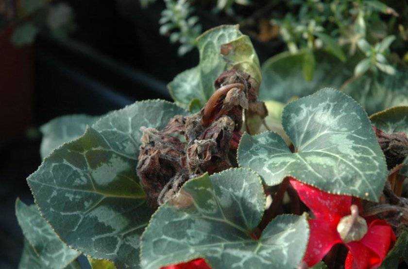 Гниль может стать следствием неправильного полива растения. Цикламен любит частые поливы, особенно во время цветения. Но они не должны быть обильными