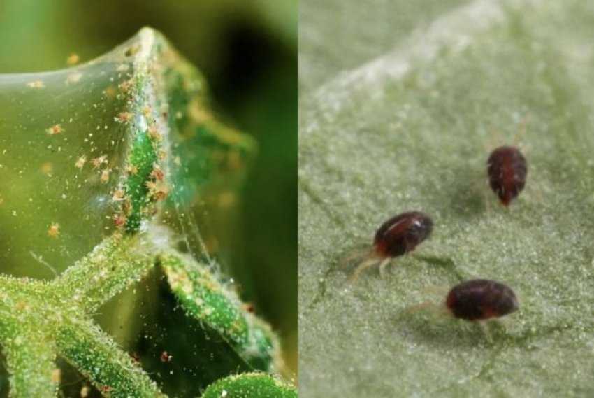 Первого из указанных вредителей распознать очень легко: помимо того что внутренняя часть листа покрывается мелкими светлыми точками, между отдельными листьями появляются характерные нити, похожие на паутинки (сам клещ слишком мелкий, но следы его жизнедеятельности очень заметны).
