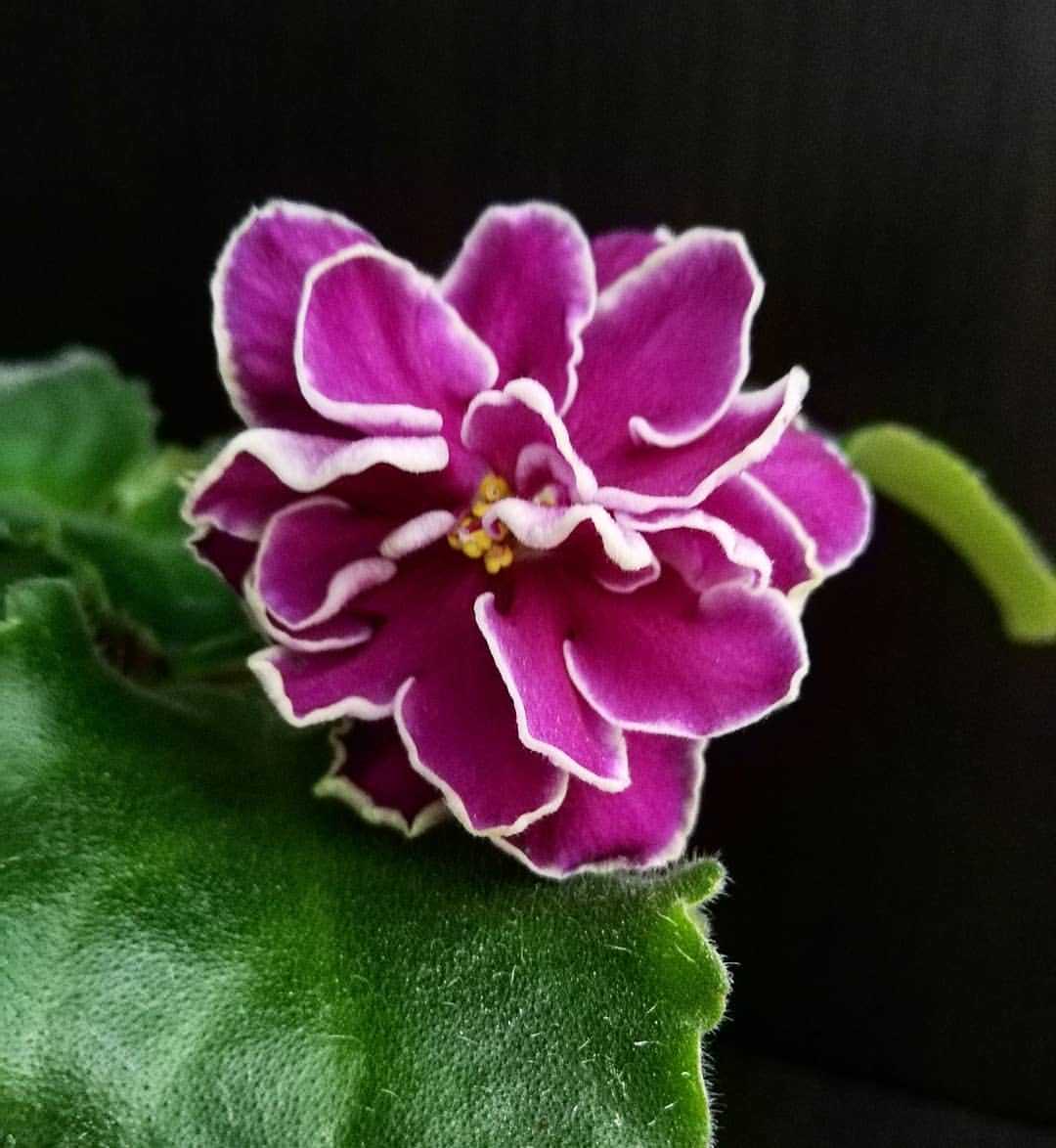 Махровые листья и яркий цветок фиалки, запечатленные на макро-съемке