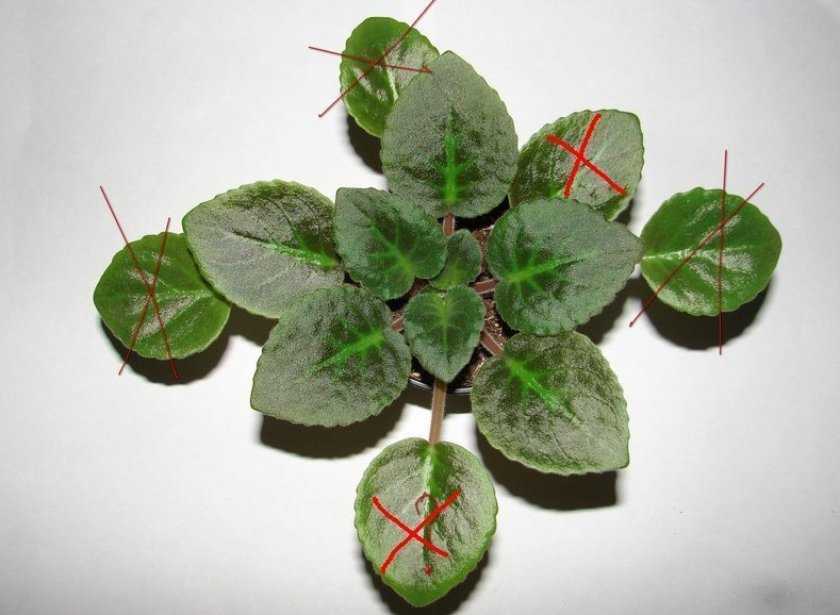 Для получения компактной и привлекательной розетки рекомендуется удалять и нижние листовые пластины, особенно если они выглядят тусклыми и безжизненными. Правда, удалив листья, вы обнажите ствол цветка, и чем старше он будет становиться, тем больше будет вытягиваться на своей ножке. Чтобы не снизить общую декоративность культуры, во время очередной пересадки можно просто присыпать нижнюю часть растения почвой.