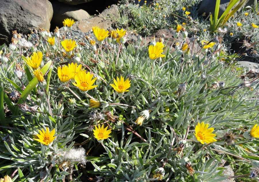 Листочки имеют темно-зеленые или серо-зеленые оттенки, на тыльной стороне находятся крохотные волоски, удерживающие тепло при понижении температуры и воду в засушливый период. Яркие цветочные корзинки достигают 9 сантиметров и поражают своими яркими красками.