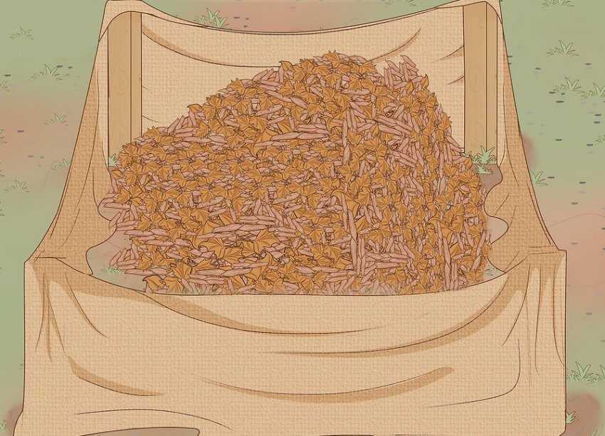 Веточки связывают шпагатом, пригибают к земле, фиксируют скобами. Сверху крону засыпают опавшей листвой или обкладывают еловым лапником. Затем покрывают листами шифера или пленки.