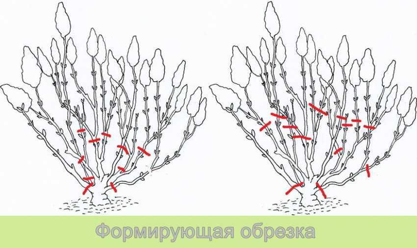 Цель данного процесса – удалить все мелкие стебли, оставляя лишь самые сильные и толстые, которые в дальнейшем вырастут и дадут новые побеги. Полная обрезка куста также производится весной.