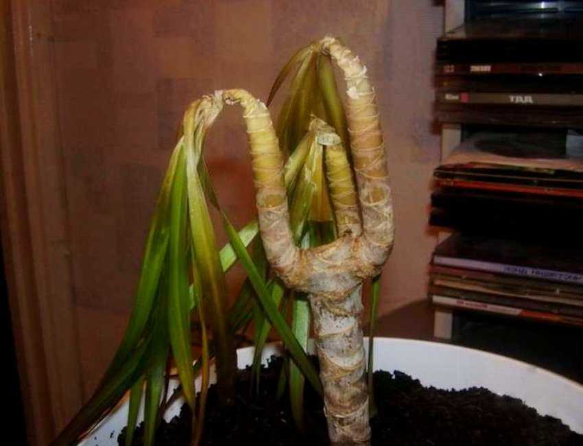 Обычно при недостатке влаги растение ещё можно спасти, если постепенно увеличить частоту и объём полива. Но при переизбытке воды и загнивании корней и ствола драцена чаще всего погибает. В этом случае самое разумное — срезать здоровую верхушку для размножения, а больное драконово дерево выбросить.