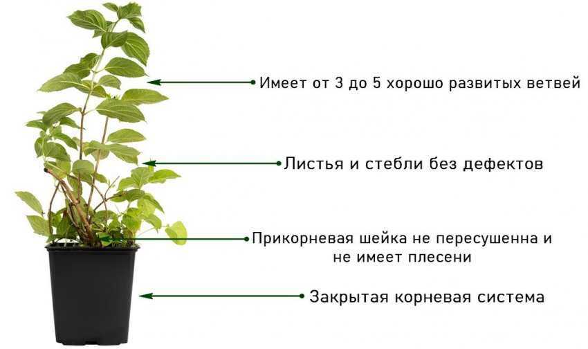Выбирайте растение с развитой корневой системой или саженцы в горшках – растение хорошо укоренится без стресса и быстро акклиматизируется на новом месте.