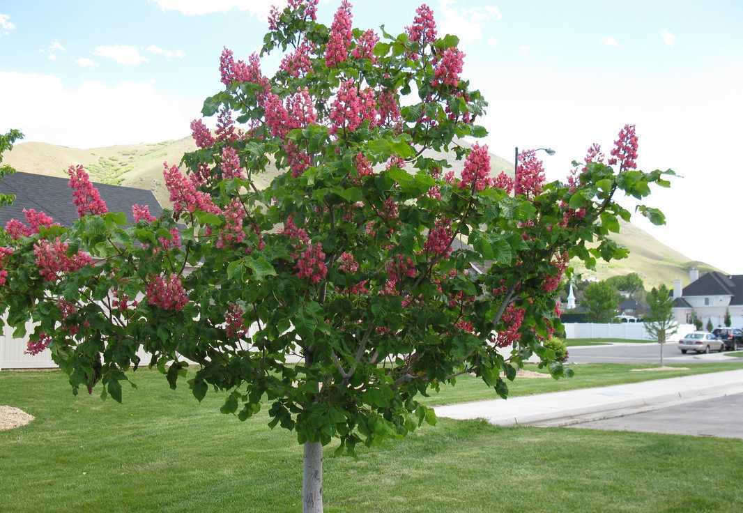 - Красный каштан, или павия, – дерево или кустарник (высота достигает 10 метров) с яркими красными цветками, растущий на востоке США.