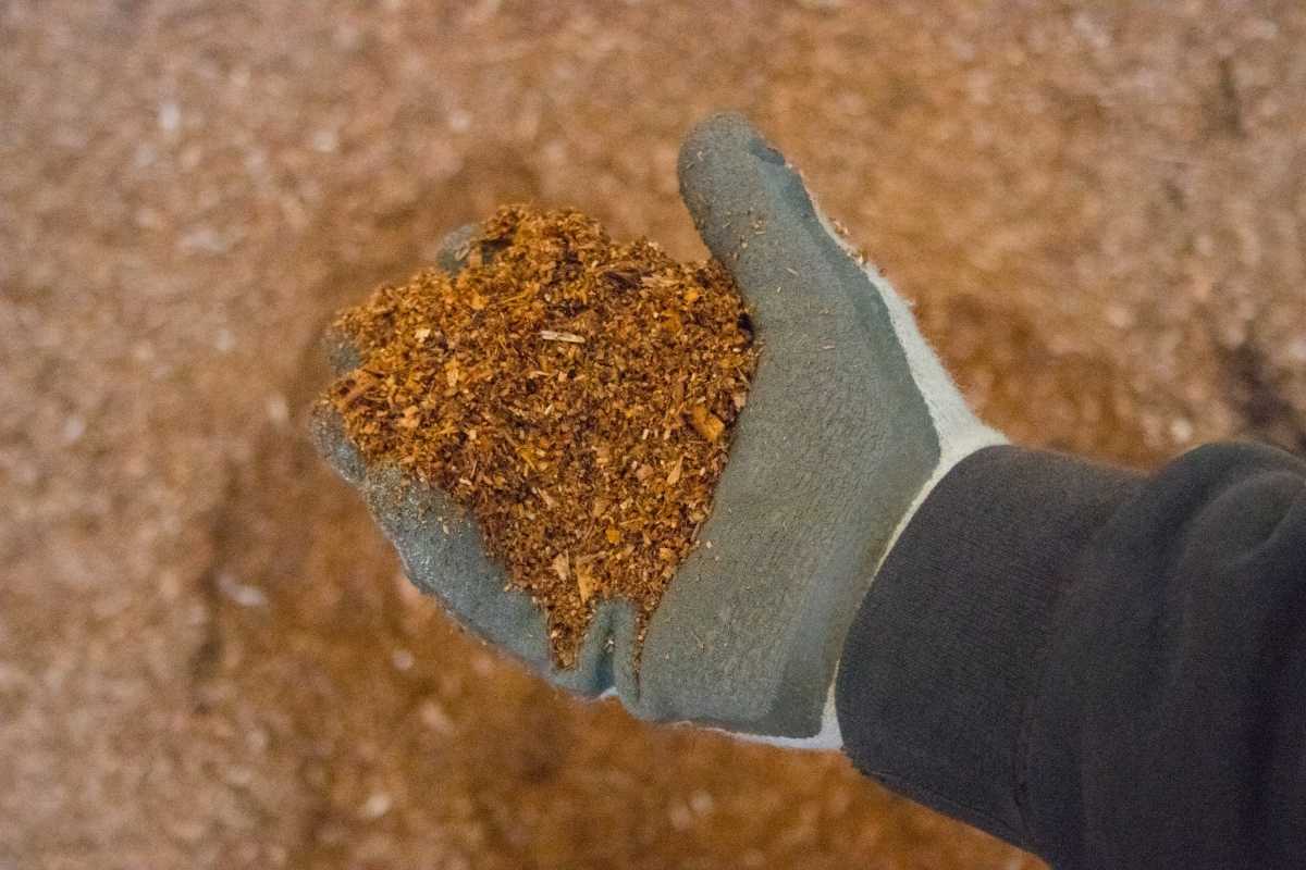 - После заделки семян верхний слой мульчируют сухими листьями, травой или перегноем.