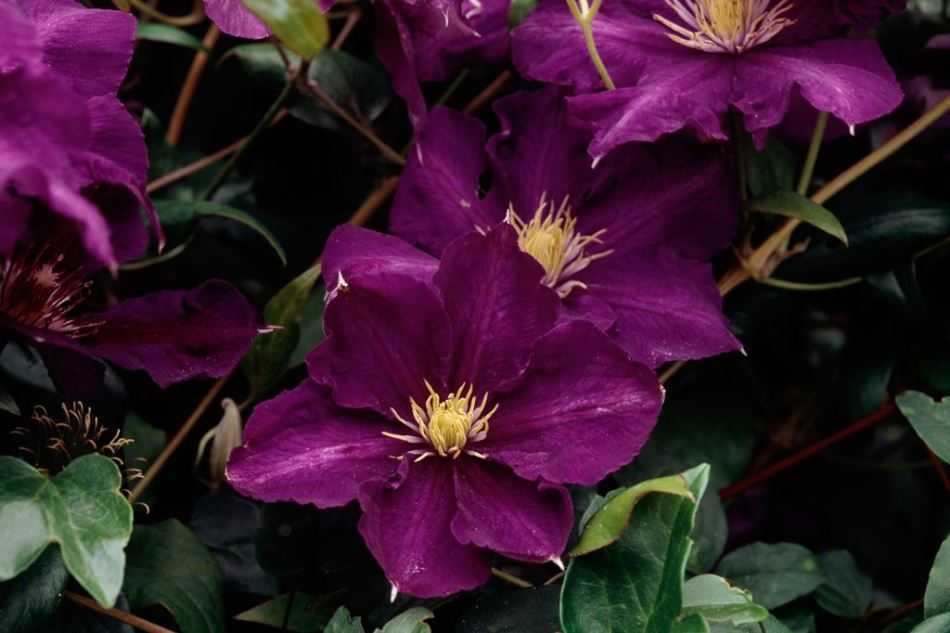 Фиолетовые и сиреневые клематисы не менее красивы, из них наиболее широко распространены: