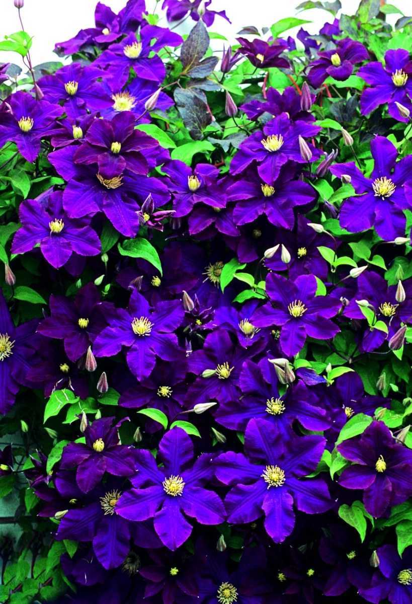 - Лианы с пурпурными и фиолетовыми цветами хорошо сочетаются с желтыми розами.