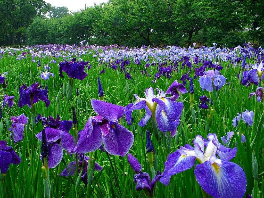 Ирисы — самодостаточные цветы, которые красиво смотрятся сами по себе, особенно если густо высажены.
