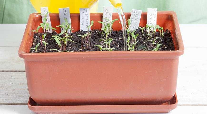 При появлении дружных всходов укрытие нужно снять совсем. Поливайте после того, как почва в контейнере полностью просохла, следите, чтобы вода не скапливалась в поддоне. Один раз в две недели подкормите сеянцы удобрением для рассады (Фертика Люкс, Агрикола, Растворин).