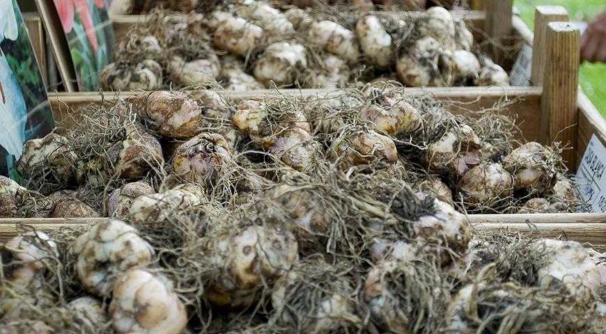 На фото: луковицы лилий, подготовленные к продаже после выкопки.