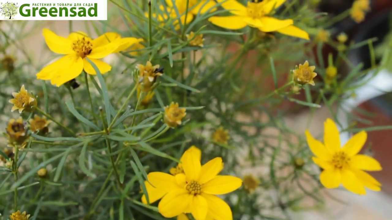 Сорт мутовчатого кореопсиса. Характерная особенность — нитевидная темно-зеленая листва. Золотистые цветки напоминают ромашки. Высота кустиков около 35-45 см.