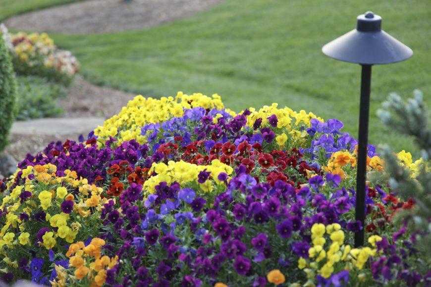 Растения высаживают ярусами, что позволяет акцентировать внимание на красоте каждого вида цветов.