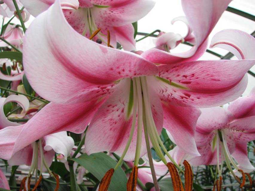 Лилии этой группы с очень нежным, приятным ароматом, бывают и очень высокие, до 2,2 метра, растут не только в теплице, но и в открытом грунте. Ориенпеты поражают своей красотой всех, кто их видит, особенно в первый раз. Во всех садах они прекрасно растут, некоторые отлично размножаются, делятся сами и наращивают много детки, чего нет у родителей. Болеют реже, чем лилии других групп, но иногда их задевает вирусная мозаика. Такие растения лучше сразу же сжечь, так как вирусные болезни растений лечению не поддаются. Уход за ориенпетами такой же, как за другими группами лилий, но их надо больше кормить, уважая их размеры.
