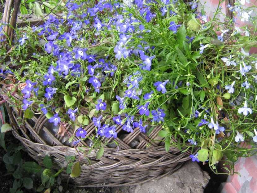 Посадка вьющегося сорта также берет начало с семенной посадки для выращивания рассады. Технология такая же. Подросшие сеянцы сажают в специальные корзиночки. Также можно использовать кашпо. В домашних условиях лобелией украшают различные пространства, террасы, окна.