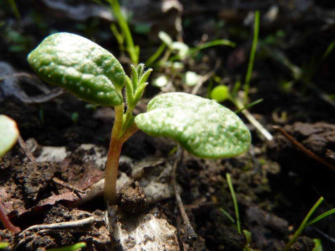 - Всходы. Когда появляются семядольные или собственные листья.