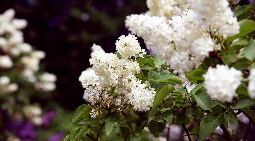- Обыкновенная сирень – наиболее распространенный вариант для посадки в скверах. В зависимости от сортовых характеристик цветки могут иметь белоснежный или лиловый окрас. Редко превышает 2-3 м в высоту и 1,5 м в ширину. Период цветения длится 20 дней, с середины мая до начала июня. Безболезненно переносит пересадку даже во взрослом состоянии. Растет на одном месте при правильном уходе 50-70 лет.