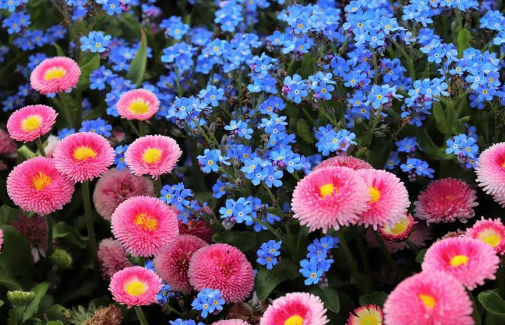 Идеально сочетаются маргаритки с другими цветочными культурами — анютиными глазками, тюльпанами и гиацинтами, нарциссами и великолепно смотрятся в компании виолы и незабудки.