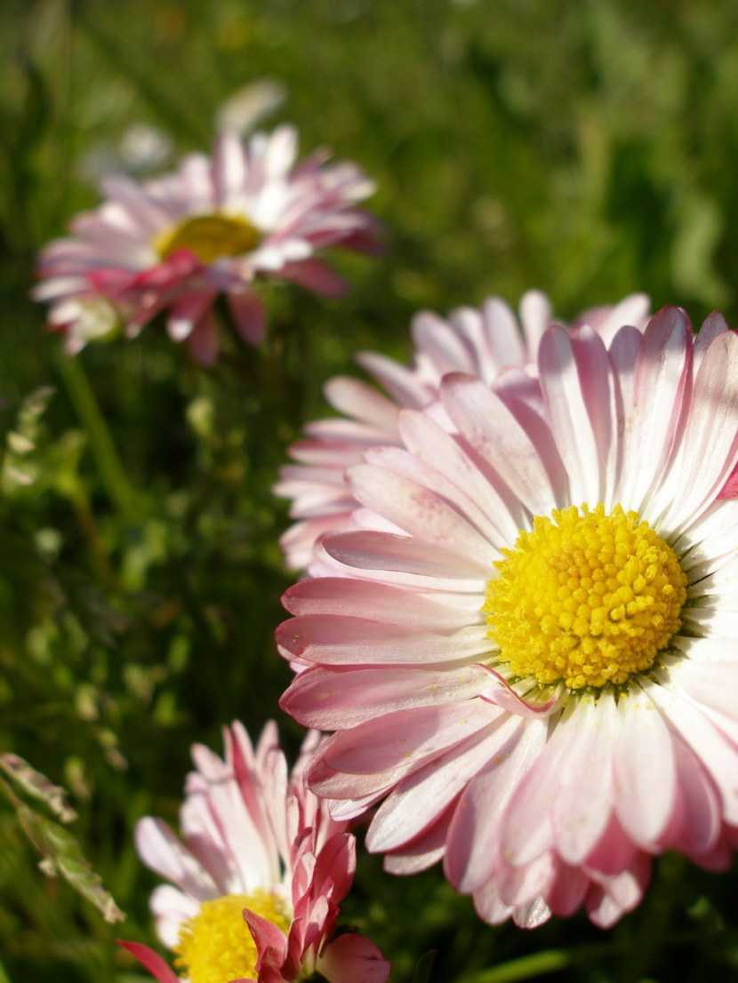 Маргаритки отлично смотрятся на фоне зелени газона, прекрасно соседствуют со злаковыми. Ландшафтные дизайнеры любят сажать их на клумбах вместе с луковичными первоцветами: тюльпанами, нарциссами, крокусами. Этот цветок может украсить сад, приусадебный дворик, террасу, балкон или даже обычный подоконник в городской квартире.