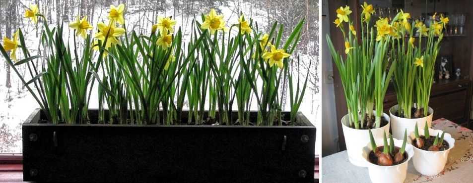 Сами нарциссы хорошо подходят под параметры весенней выгонки. При выращивании нарциссов в горшке, их луковицы располагают в шахматном порядке. Этот подход нужен при необходимости уместить как можно больше экземпляров.