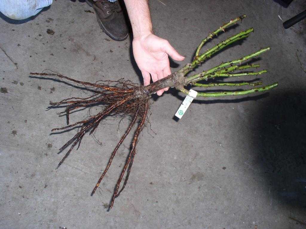 Если же вы высаживаете растение не привитое, перед проведением этой работы нужно выполнить некоторые манипуляции перед посадкой. Для этого нужно замочить в воде корни, а затем убрать с растения все листья, срезать секатором поломанные, незрелые побеги. Древесным углем присыпьте срезы. Корни и наземную часть нужно укоротить до 30 см. При помощи раствора медного купороса саженцы нужно продезинфицировать.