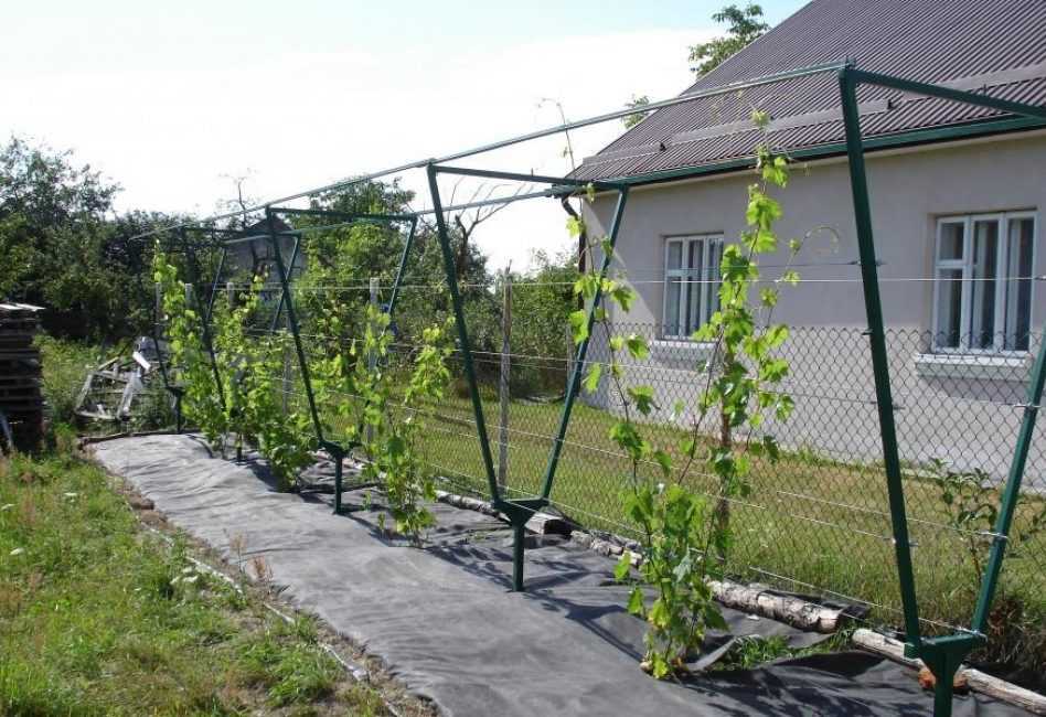 Качество и даже урожайность винограда во многом зависят от выбора шпалер. Опору для него делают в основном двухплоскостной. Облегченные конструкции, расположенные в одной плоскости, используются лишь для молодой поросли, декоративных или мелких сортов.