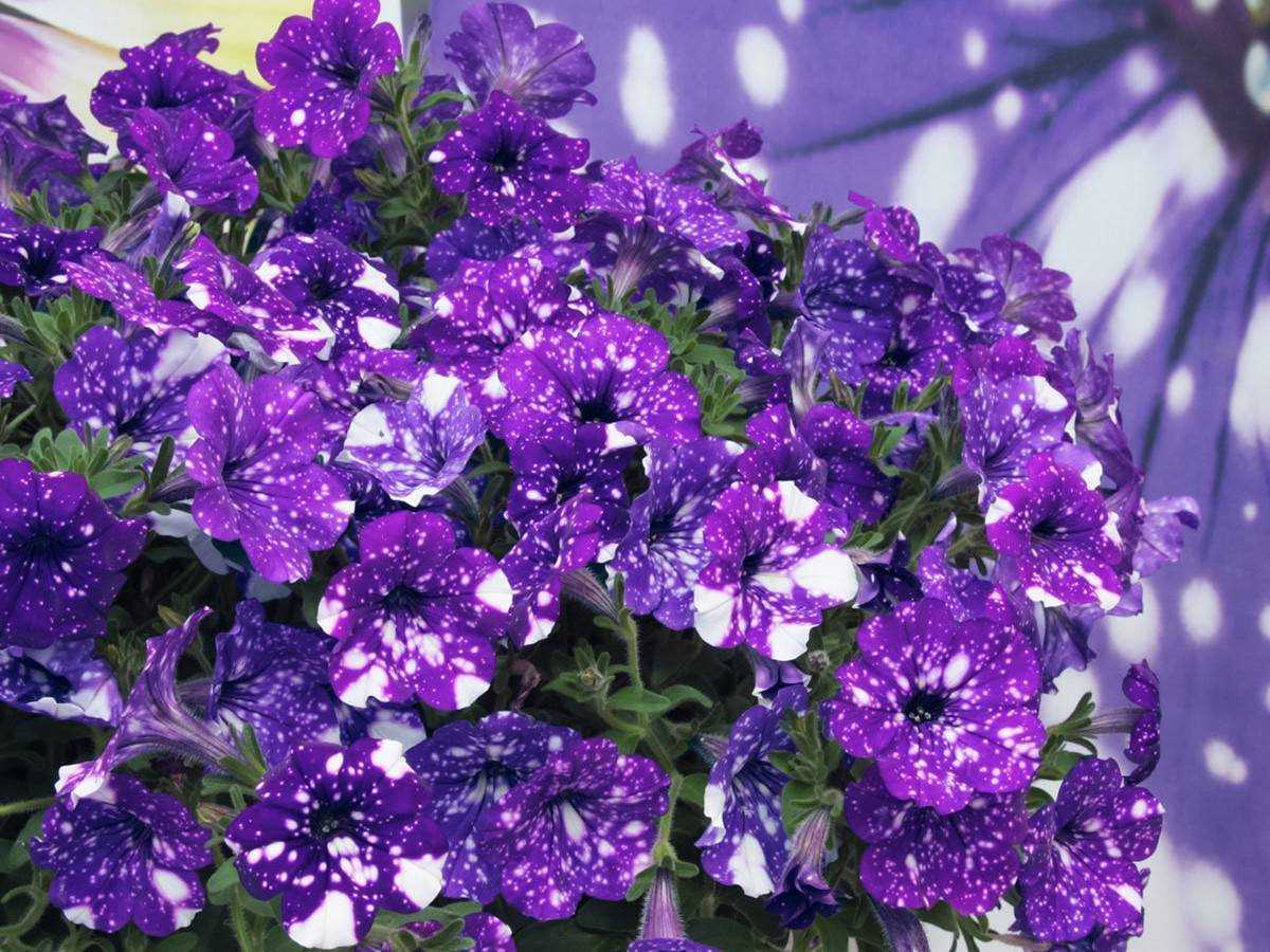 Шок Вейв – побеги достигают длины 85 см, цветки 5 см в диаметре, цвета: бордовый, синий, розовый, пурпурный.