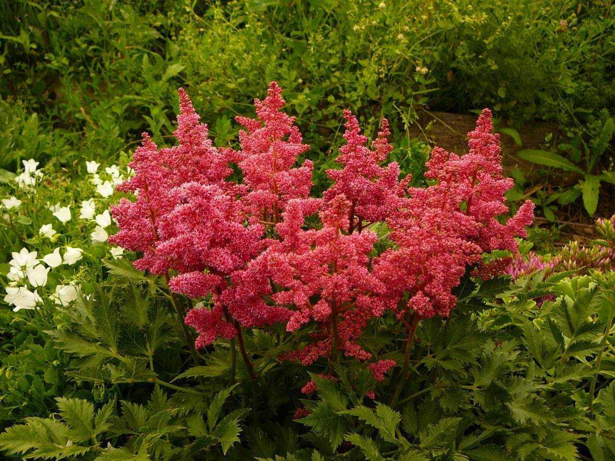Любителям ярких усыпанных цветами клумб стоит сочетать астильбу с колокольчиками, ирисами, шалфеем, флоксами и петуниями.