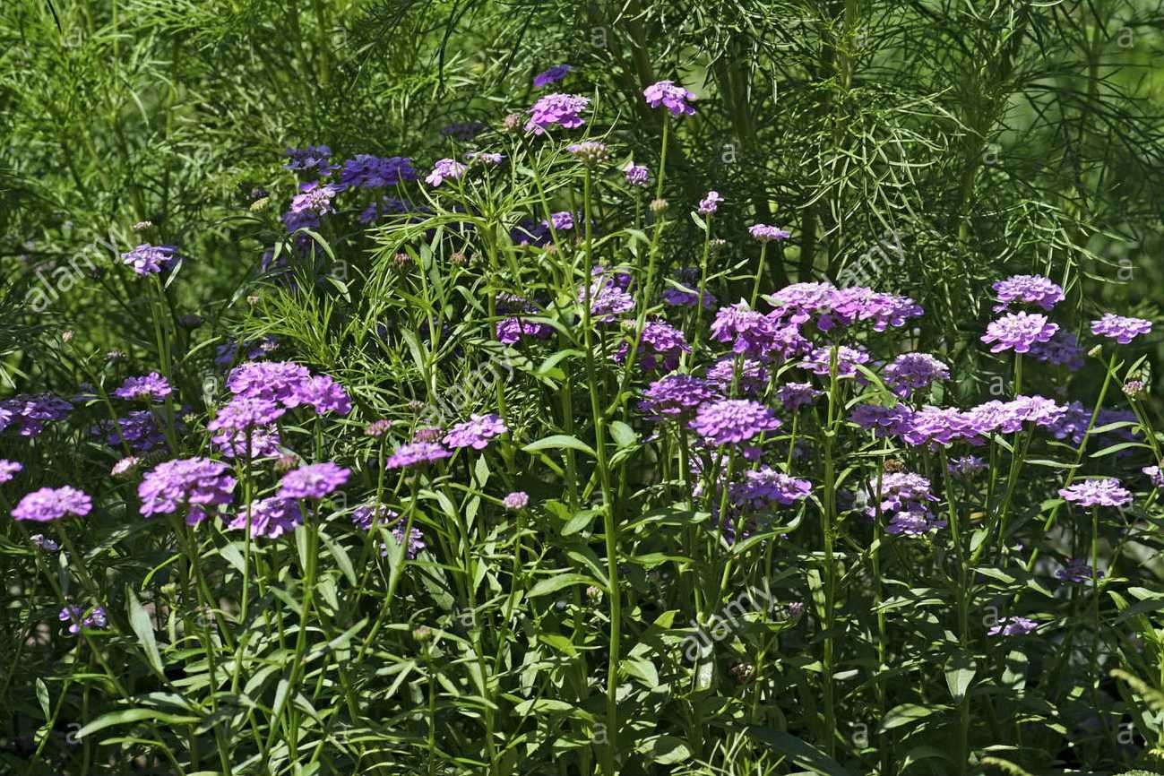 Иберис зонтичный (Iberis umbellata) – однолетнее растение высотой до 40 см, с ровными стеблями. Листья округлой формы, очередные. Цветки ароматные, белоснежные, фиалковые, образуют щитковидные корзинки. Через 60 дней после посева представители вида начинают цвести, продолжительность цветения не менее двух месяцев.
