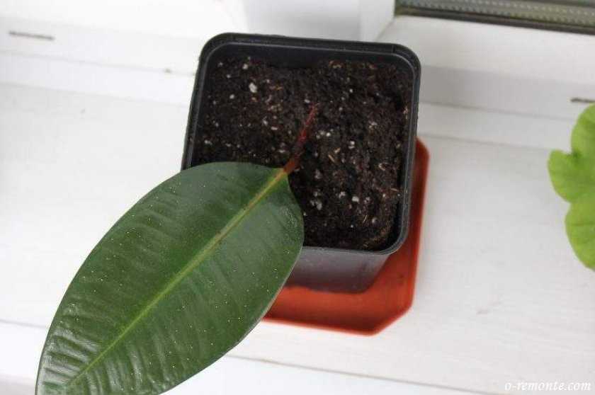 Метод укоренения листом позволит побегам выпустить корни, которые помогут фикусу укорениться в грунте.