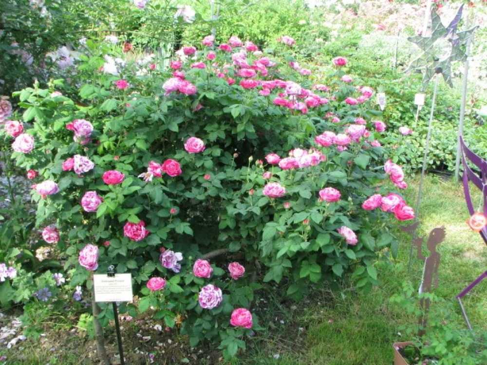 При правильном выборе места и уходе парковая роза Фердинанд Пичард радует пышным цветением в течение всего лета