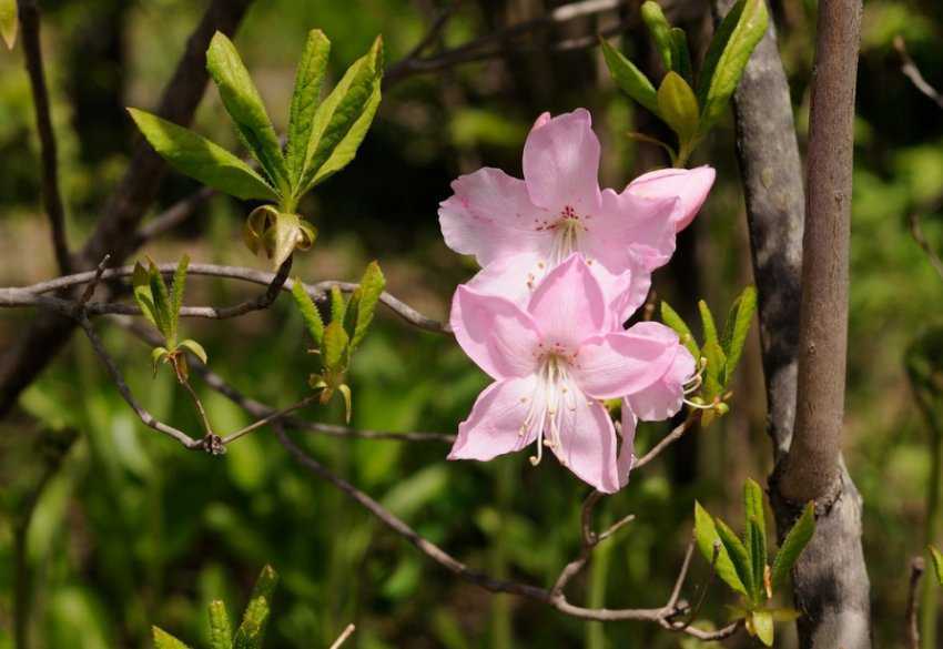 Основное отличие от даурского рододендрона — насыщенность розового цвета и листов.