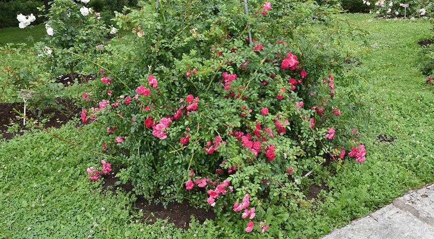Вьющаяся старинная роза сорт Excelsa, Эксцельза. Побеги длиной до 2-4 м, устойчивость к черной пятнистости и мучнистой росе низкая. Цветки мелкие, диаметром до 4-5 см, малиновые. Цветение однократное, но очень обильное в течении месяца. Тип розы — гибрид Wichurana.