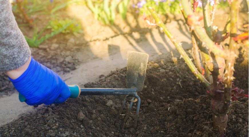 Старую землю относим в другое место сада, а в траншею засыпаем перепревший навоз и свежий компост с добавкой комплексных минеральных удобрений. Место прививки засыпаем свежим компостом. После этого дополнительно проливаем почву раствором «Корневина» и мульчируем. Летом можно поддержать розу опрыскиванием стимулирующими препаратами и поливом под корень раствором гуматов. В год обновления не стоит кормить розу азотосодержащими удобрениями под корень – можно дать по листу комплексные удобрения с микроэлементами.