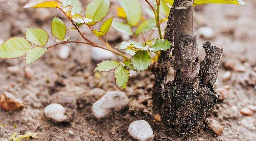 2. Место прививки розы очистить от земли, при необходимости остатки можно смыть водой.