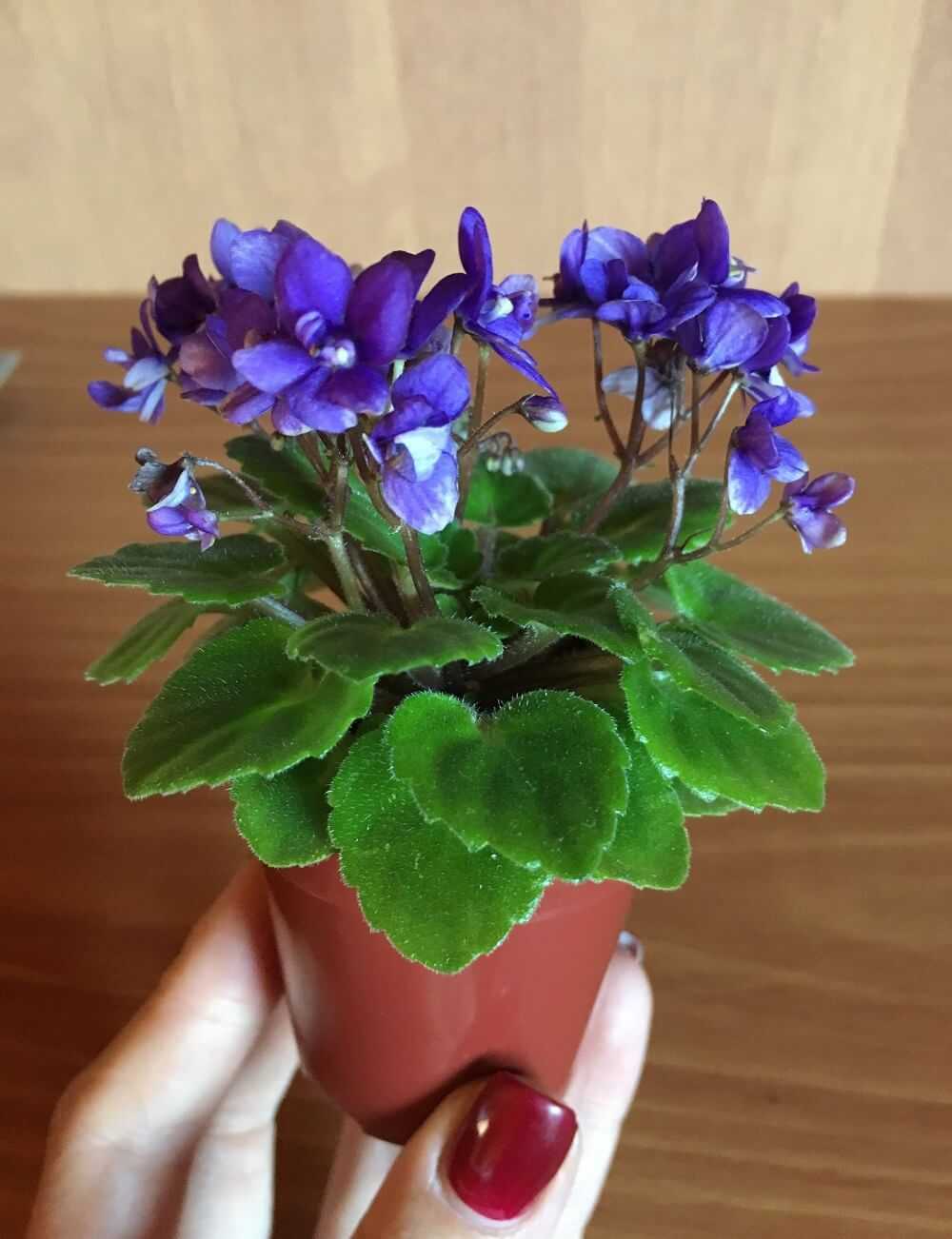 Эти миниатюрные цветы растут в таких же миниатюрных горшочках, и легко помещаются на ладошке. И несмотря на свои размеры, потрясающе красивы. По внешнему виду больше напоминают фарфоровые фигурки. Но ухаживать за ними очень просто. Поэтому в последнее время мини-фиалки становятся популярными.