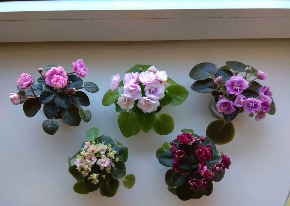 Окрас цветов мини-фиалок включает довольно широкую палитру цветов: от нежных пастельных оттенков до более ярких и насыщенных. Чаще всего цветоводы-любители выращивают на своих подоконниках самые распространенные сорта мини-фиалок: